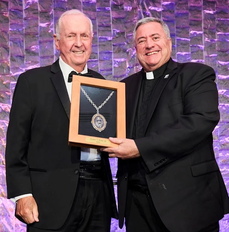 Amidst a crowd of hundreds of alumni, parents and friends, including three stars of the small screen, the University honored Harry T. Rose ’65, founder and chairman of The Rose Group, one of the largest restaurant franchise companies in the United States, with its President’s Medal at the President’s Medal Gala. The event took place at Pier Sixty, Manhattan’s largest waterfront event venue. The black-tie gala, which benefits the Presidential Scholarship Endowment Fund, featured a VIP yacht excursion around New York Harbor for table sponsors and their guests with Brian Baumgartner, Andy Buckley and Kate Flannery, aka Kevin, David and Meredith from “The Office.”